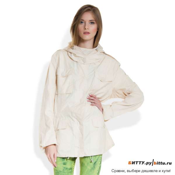 Молочного цвета ветровка до середины бедра. Четыре вместительных кармана на фронте, объемный капюшон, который хорошо защищает от ветра и дождя. Заниженная талия на кулиске позволяет корректировать силуэт. Отличный выбор для непогоды.Выбирайте с облегающими брюками и жокейскими или резиновыми сапогами.
