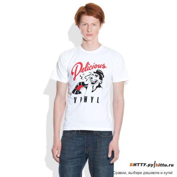 Повседневная футболка с оригинальным принтом и надписью "VINYL". Прямой крой.