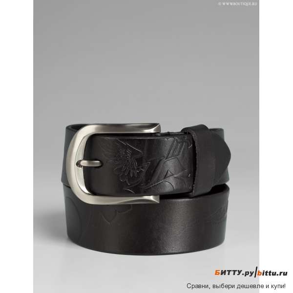 Женский ремень Braude из толстой чёрной кожи, декорированной тиснёным рисунком. Внутренняя поверхность гладкая, в цвет ремня. Модель регулируется по длине с помощью пряжки из полированного металла. Ремень поставляется в текстильном чехле.