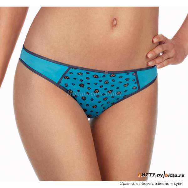 Яркие молодёжные трусики-танга с цветочным орнаментом. Трусики декорированы тесьмой и пуговичкой. Состав: Полиамид, %: 80 Эластан, %: 20 Низ: Трусики: танга Сзади: прозрачные Линия талии: низкая Ластовица: хлопок Стиль: Стиль: мода Рисунок: принт; цветочный.